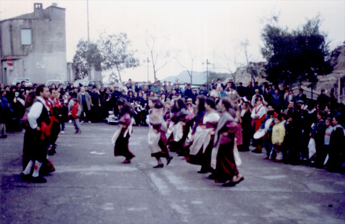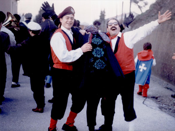 Ai tempi dei nostri nonni il carnevale era ancora caratterizzato dalla semplicità della vita contadina: i piccoli si mettevano in maschera riciclando i vestiti degli adulti e gli oggetti trovati in casa, mentre per il viso bastava un fazzoletto forato in corrispondenza degli occhi. Altri invece, detti “frassari“, si dipingevano la faccia col carbone. Poi, in gruppo, andavano in giro per il paese e intrattenevano la gente con canti, filastrocche o musiche, cercando di avere qualcosa in cambio: muniti di spiedo, entravano nelle case nel tentativo di sfilare le salsiccie ancora appese alla pertica.