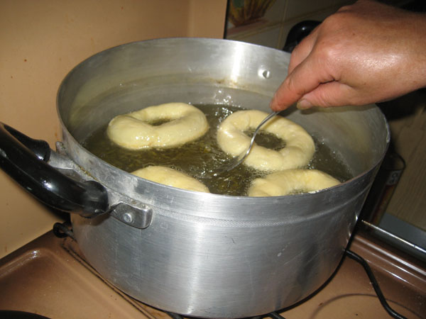 Bollire le patate e schiacciarle, in modo da ridurle in purè; impastare farina e patate, aggiungere acqua, finché l’impasto non diventa elastico (come per la pizza), e il lievito precedentemente sciolto in un po’di acqua tiepida. Lasciar lievitare un paio d’ore. Ungere le mani nell’olio e prendere un dose di impasto (più o meno della grandezza di un uovo). Con un dito, farvi un buco e allargarlo fino a ottere una ciambellina. Mettere molto olio a friggere in una padella, buttare il cullurello nell’olio bollente e dopo qualche tempo girarlo. Il cullurello si gonfia durante la cottura. Togliere dall’olio quando è dorato e lasciar asciugare su carta da cucina. Spolverizzare lo zucchero quando il cullurello è ancora caldo.