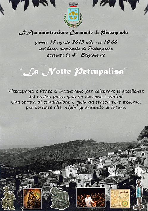 Il 18.08 a partire dalle ore 19:00 si svolgerà nel centro storico di Pietrapaola la quarta edizione della Notte Petrupalisa.