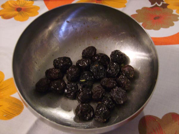 Mettere le olive in un cestino di vimini che va poi appeso nella parte alta all’interno di un camino a legna. Dopo una settimana o poco più di esposizione al fuoco, togliere le olive, che nel frattempo saranno secche. Risciacquarle, metterle in un setaccio e condirle con origano e sale. Consumare nel giro di due o tre giorni.